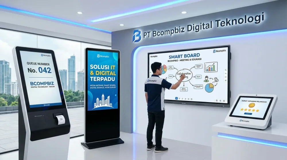 PT Bcompbiz Digital Teknologi adalah vendor utama pengadaan Mesin Antrian, Kiosk Custom, Videowall, Videotron dan Display Interaktif skala nasional.